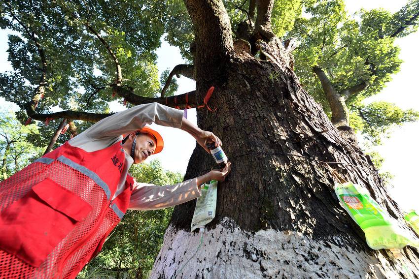 “我们重点开展了除藓、加固、修复、复壮以及地上环境改良,全方位为古树‘保驾护航’。”湖北益壮林业有限公司技术负责人许艳根说。