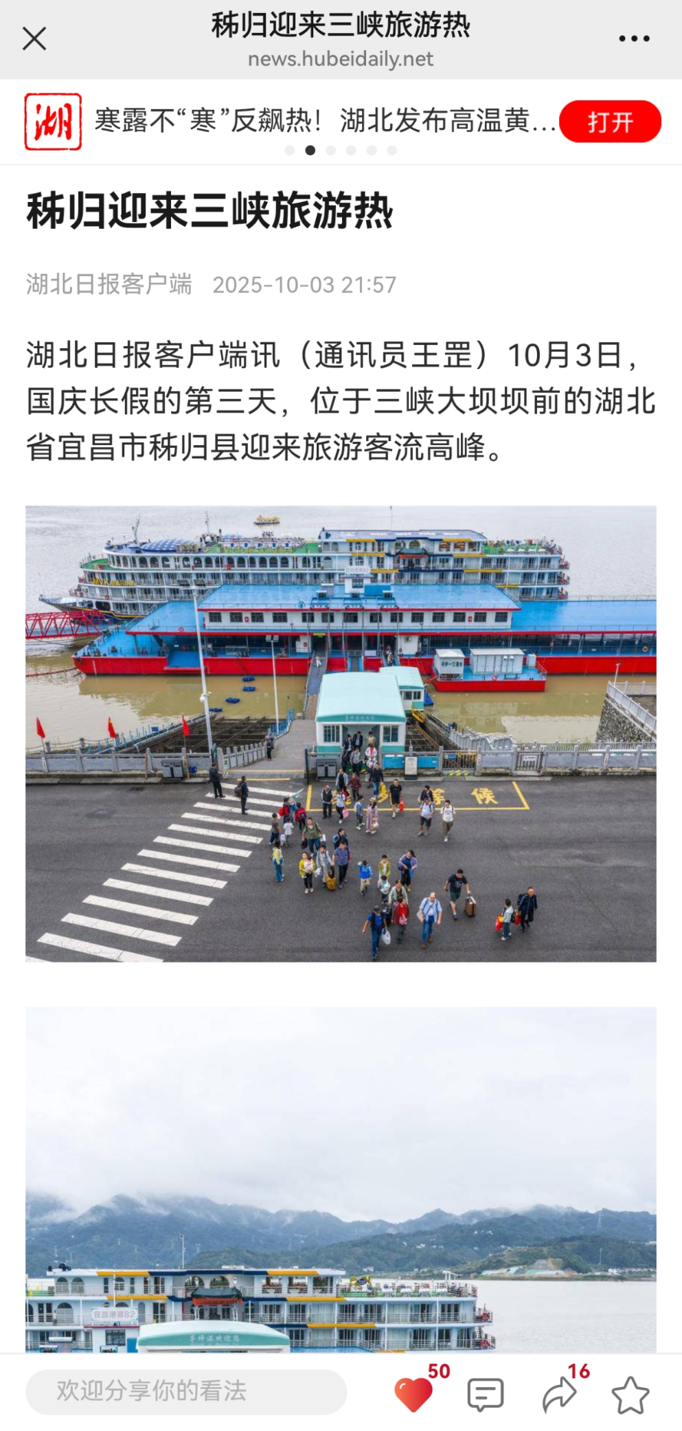 8天长假期间,秭归文旅市场全面开花,人气与口碑双双飙升。
