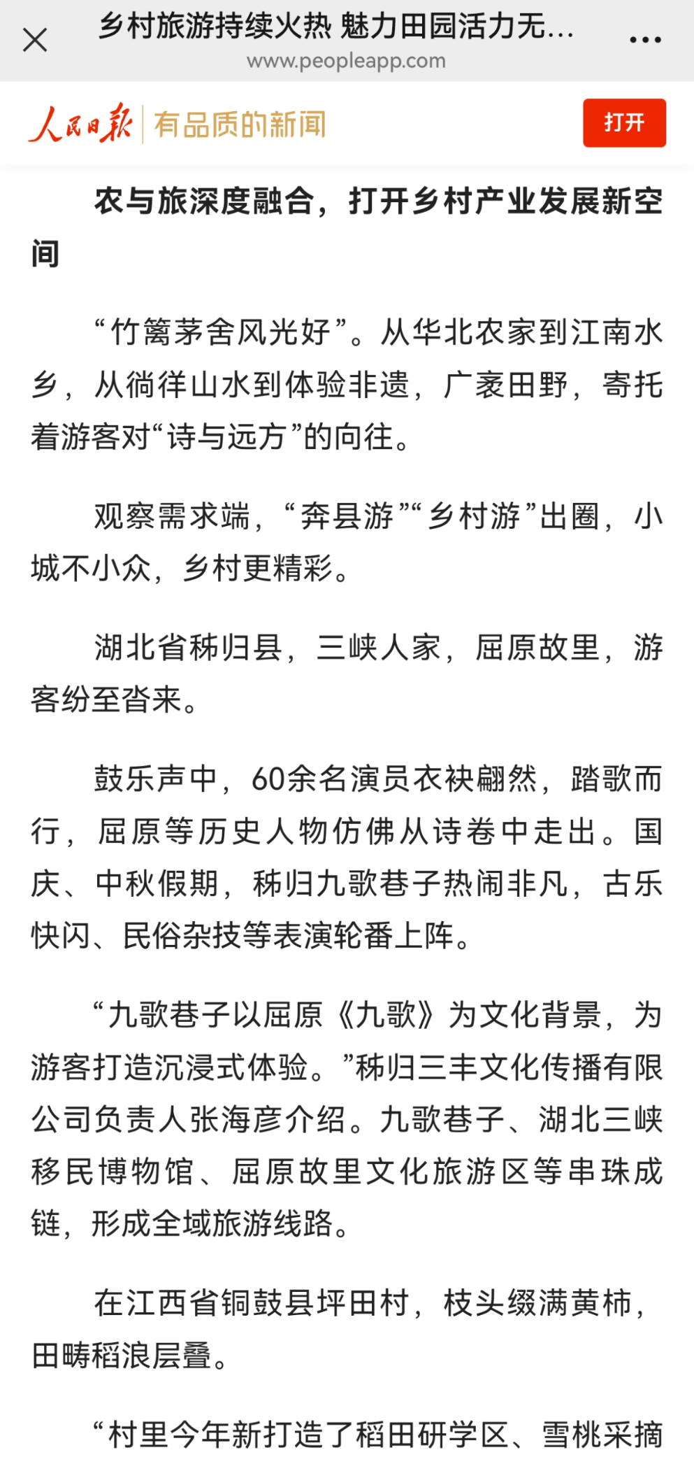 人民日报头版报道九歌巷子,湖北日报、极目新闻等上级媒体发稿10余篇,湖北文旅点名秭归是“必打卡宝藏小城”,8天6次登上湖北旅游假日综述,品牌影响力直接UP!