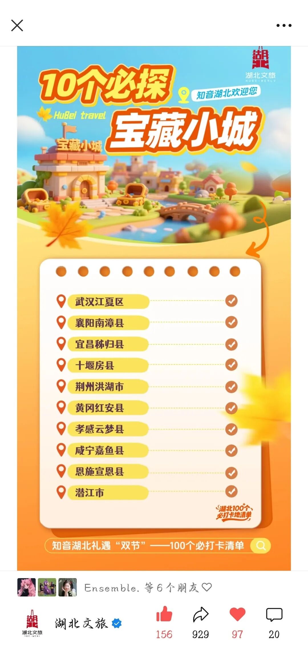 节前借“赵立坚推荐湖北秭归”“秭归鸟”造势,节中发九歌巷子花絮、发光摆渡车实景,“欢乐十一来秭归”等话题冲上区域热搜。