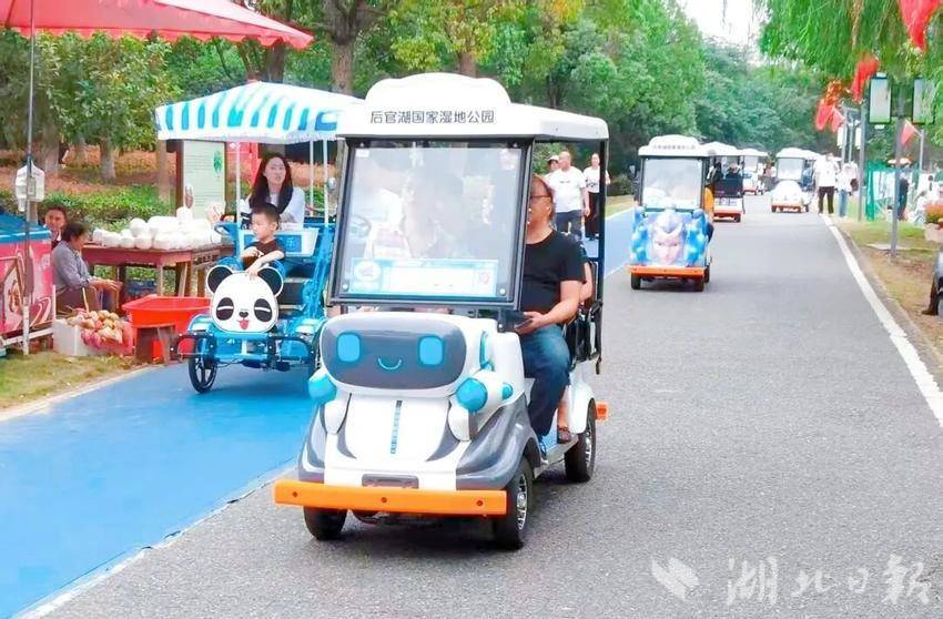 为提升游览体验,公园同步完善智慧服务与配套设施。无人驾驶智能车沿绿道运行,游客扫码即可乘坐,车载AI语音助手提供导览讲解,有效缓解园区出行压力,广受家庭游客欢迎。知音“藕汤宴”与“藕工坊”成为休憩热点,游客可品尝地道铫子藕汤、了解制作工艺,亦可选购藕粉、藕夹等蔡甸特产。