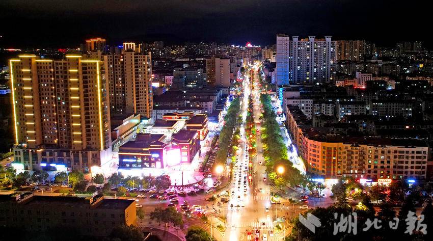 湖北日报客户端讯(通讯员黄小明)10月2日晚,京山市城区灯火璀璨,夜色如昼。从高空俯瞰,主次干道的路灯与沿街商铺霓虹交相辉映,车流在光影间穿梭如织;居民区与商圈的暖光错落分布,既勾勒出城市建筑的轮廓,也将街头巷尾的烟火气晕染得格外动人。