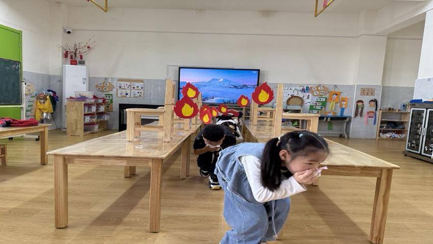 “火场逃生技巧”环节尤为受欢迎,孩子们用湿毛巾捂住口鼻,弯腰低姿,快速有序穿过模拟“浓烟区”。在老师指导下,他们还分组演练了报警、等待救援和互助逃生等流程。