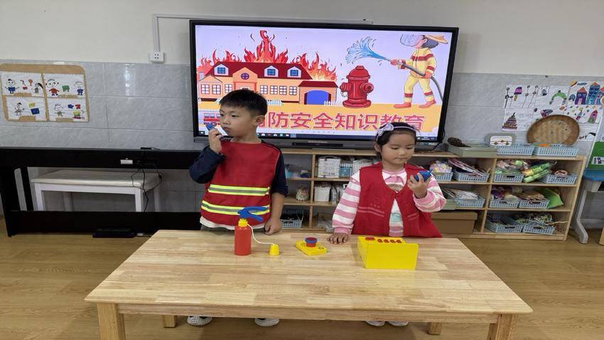 在“小小消防指挥员”游戏区,孩子们模仿接警对话,认真询问“火情”位置和关键信息。“校园安全小巡防”情景剧中,他们化身安全巡查员,发现应急灯不亮、通道堵塞等问题,在观察讨论中加深理解。