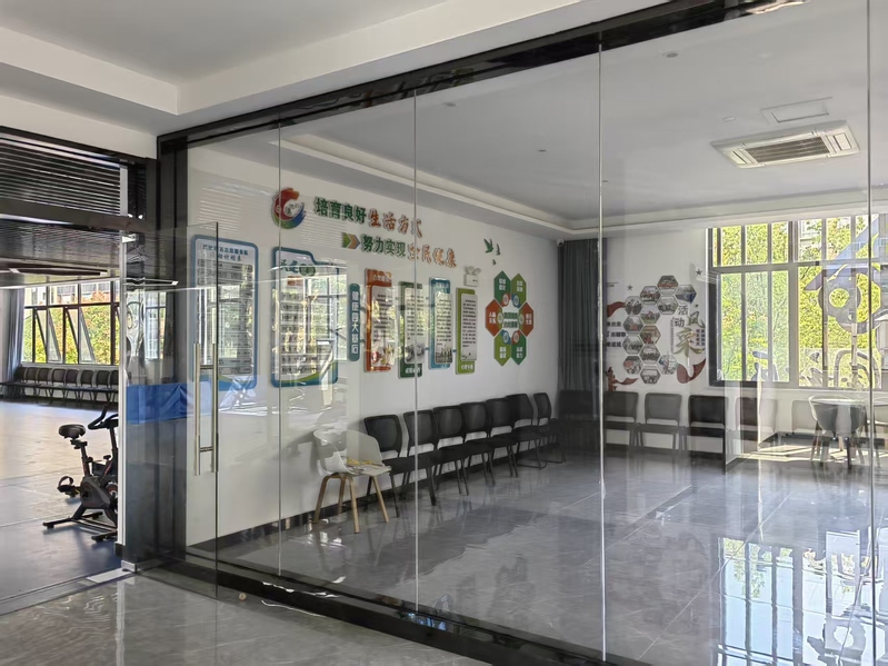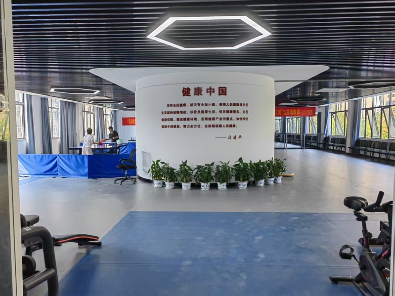从施工现场可见,改造过程中,施工人员细致搭建木质框架,逐步安装玻璃隔断与金属门框,最终呈现出既保证空间通透感,又实现功能私密性的效果。改造后的健康小屋内,乒乓球桌、健身器械有序摆放,健康科普展板清晰展示“合理膳食”“适量运动”等知识,为居民打造出“一站式”健康服务阵地。