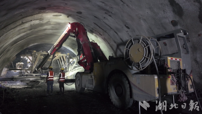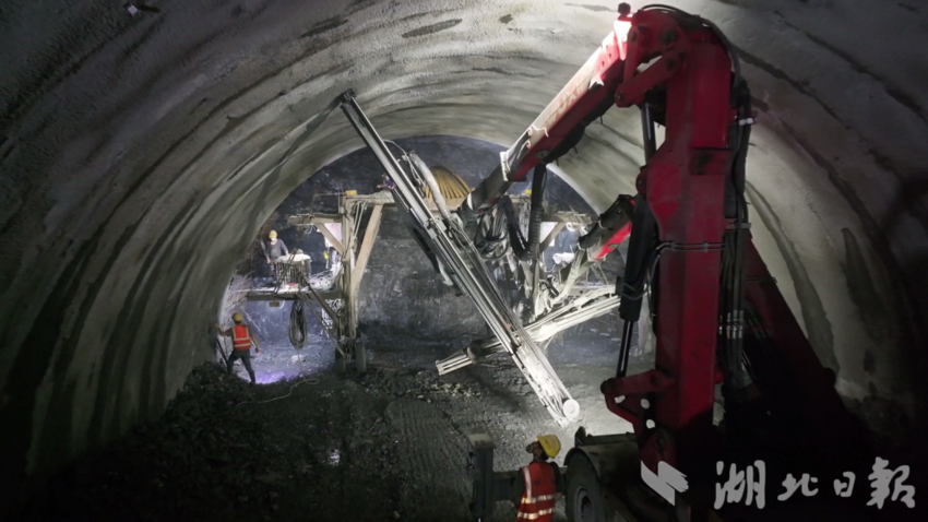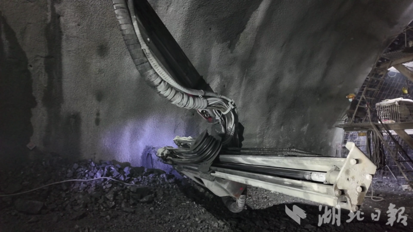 隧道内,多臂凿岩台车、湿喷机械手等智能装备已进场,正24小时不间断施工。工人只需手持“游戏柄”遥控操作,安全又高效。去年11月份,该隧道实现最高月掘进160米的纪录。