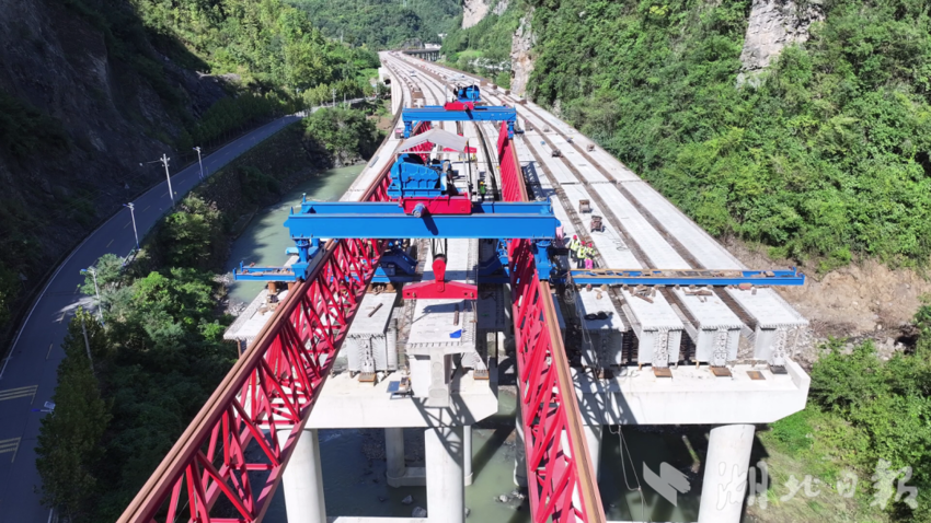 湖北日报客户端讯(通讯员 李遥 余清清 曾涛)国庆、中秋假期本是阖家团圆、休闲度假之时,但在竹溪县十巫南高速公路的建设现场,却是一片繁忙景象,建设者们放弃休息,坚守岗位,在秦巴山区的深山峻岭间争分夺秒推进工程,机械臂精准吊装百余吨T梁,隧道内多臂凿岩台车持续掘进,这个假期,他们用汗水为鄂西北交通动脉注入“加速度”。
