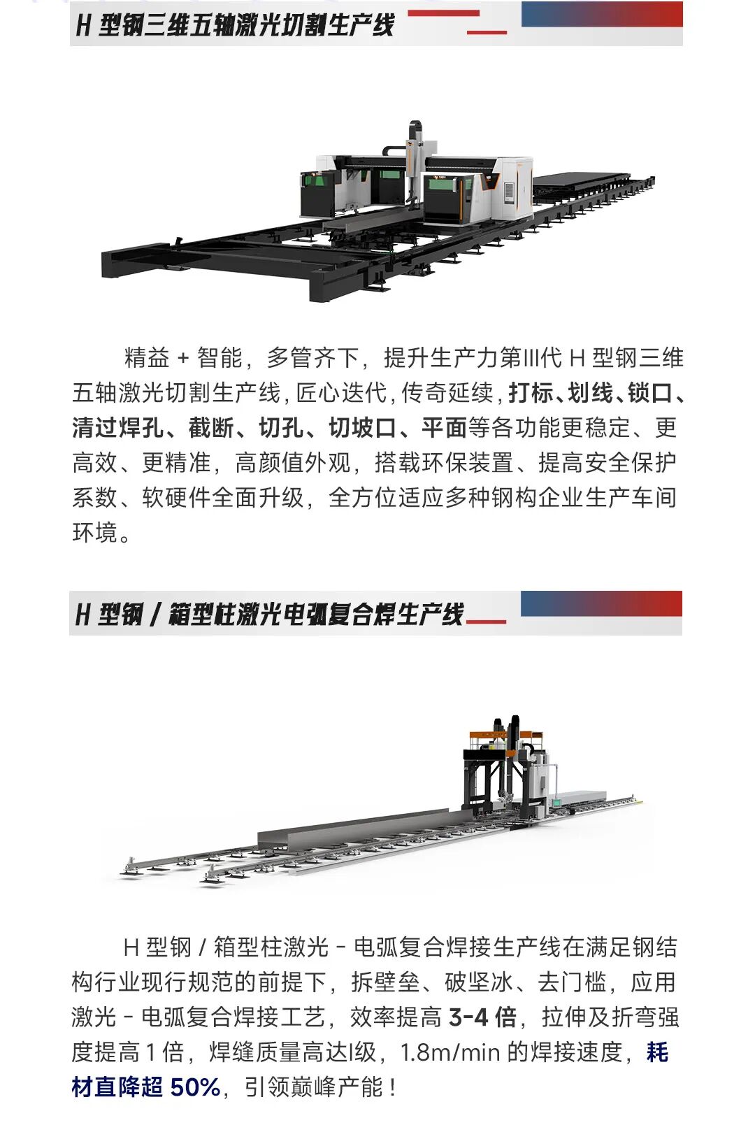 9月24日-26日,“第九届中国钢结构桥梁大会”在江苏江阴隆重召开。武汉予成激光智造有限公司(以下简称“予成激光”),携H型钢三维五轴激光切割生产线、H型钢/箱型柱激光电弧复合焊接生产线、筋板机器人自动焊接生产线等三款产品惊艳亮相,旨在为钢结构桥梁行业提供更高效、精准的生产解决方案。