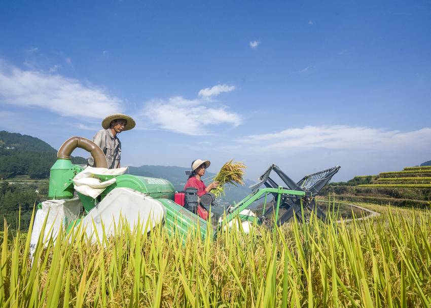 湖北日报客户端讯(通讯员周仕伟、马若兰)10月10日,秭归县沙镇溪镇长春村,高山特色冷水稻成熟,当地群众抢抓晴好天气加紧收割。