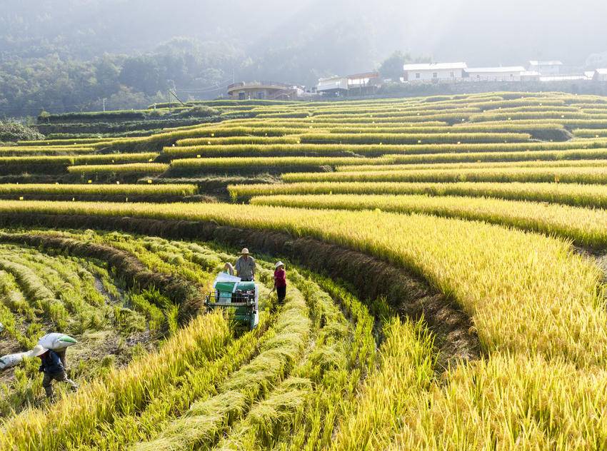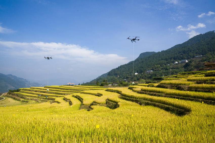 秭归县半高山地区具有冷水稻生长的良好条件,近年来,当地以”公司+合作社+农户”的模式,发展采用传统方式种植的冷水稻产业,以山泉水灌溉的高品质特色冷水稻深受市场欢迎。同时,当地积极推广机械收割与无人机吊运,提升作业效率,降低农业生产成本,高山冷水稻已成为当地乡村振兴的重要产业。