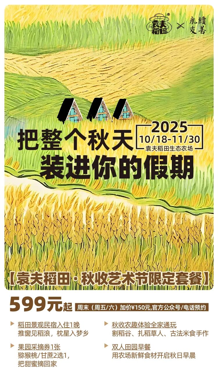 为让你深度体验秋日之美,我们特别推出两款秋收节限定民宿套餐,将住宿、美食与体验完美融合。
