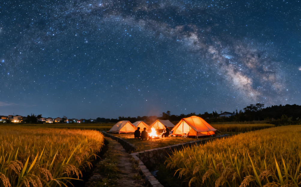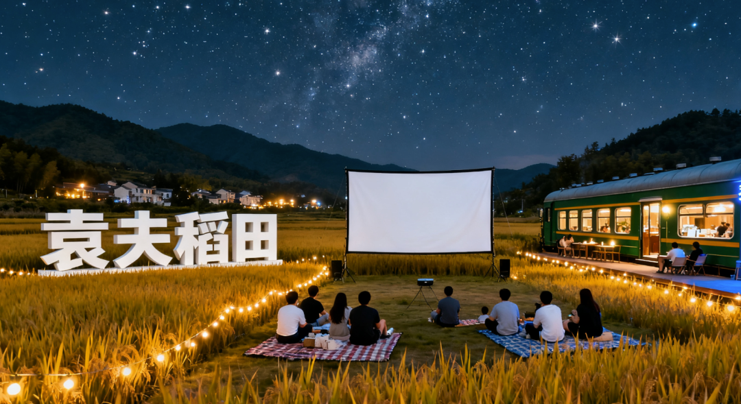 星空电影院:在稻浪的沙沙声中,看一场露天电影。
