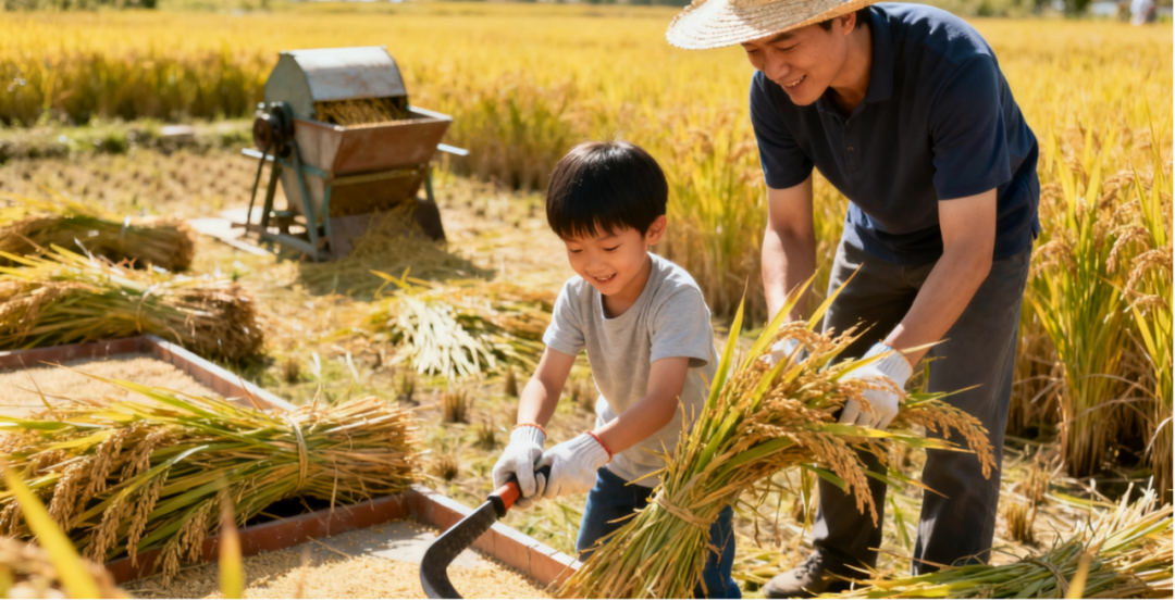 收割稻谷:在农艺师指导下,学习使用传统镰刀,体验收割的艰辛与喜悦。亲手将稻穗拍打在谷桶上,感受“稻谷脱离”的瞬间,了解一粒米的由来。