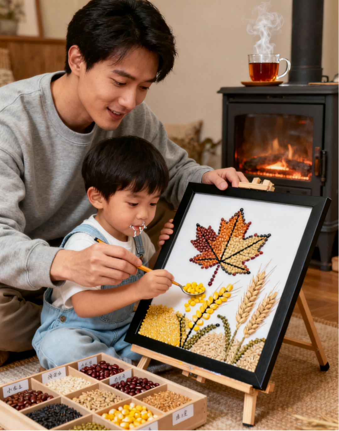 五谷杂粮画:用红豆、绿豆、小米等,拼贴出你心中的秋天画卷。