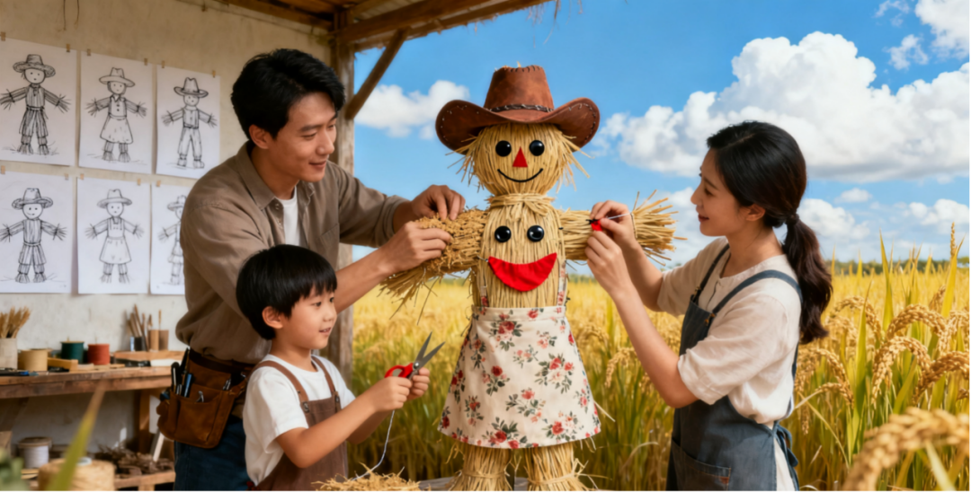 创意稻草人:发挥想象力,全家合力扎制一个独一无二的稻草人。