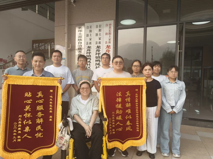 湖北日报客户端讯(通讯员陈虎、谭秋雨)近日,长阳土家族自治县龙舟坪镇鸣凤社区居民刘女士将一面锦旗送到社区,感谢社区和司法所给予的全心帮扶。