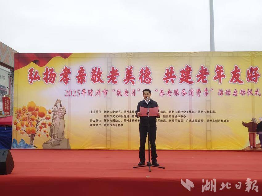 湖北日报讯 10月11日,2025年随州市“敬老月”暨“养老服务消费季”活动在随州万达广场启动。市人大常委会副主任金厚鹏宣布活动启动。