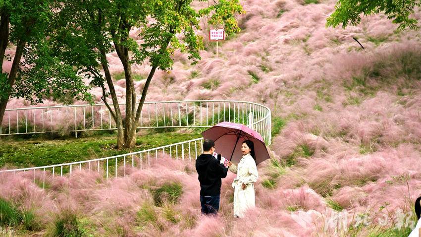 湖北日报客户端讯(通讯员王涛)郧阳区中华水园,是当地重要的湿地公园之一,集自然景观与休闲娱乐为一体。近年来,园内种植的粉黛乱子草已成为秋季热门观赏植物,吸引大量游客前来拍照打卡。