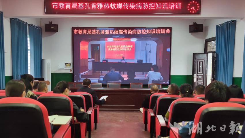 培训会采用线上直播形式进行,教职工们认真聆听汉川市教育局孙胜平带来的专题讲解。主讲人从“基孔肯雅热”的传播途径和临床症状切入,着重对蚊虫消杀、人员管理、应急预案制定这三大核心防控要点进行了深入解读。