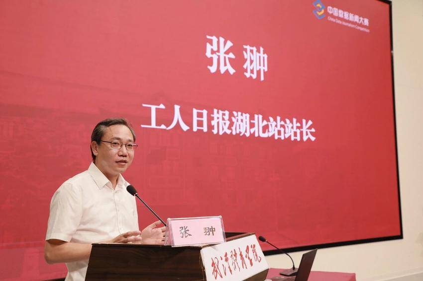 工人日报湖北站站长张翀分享了中央主流媒体在智能时代的转型实践。他通过构建数字化虚拟平台实现从单向传播向共情互动的转变,介绍报社引入AI查重机制,同时更注重打造具有共情力的内容,让传播真正实现“共享、互动、共情”。