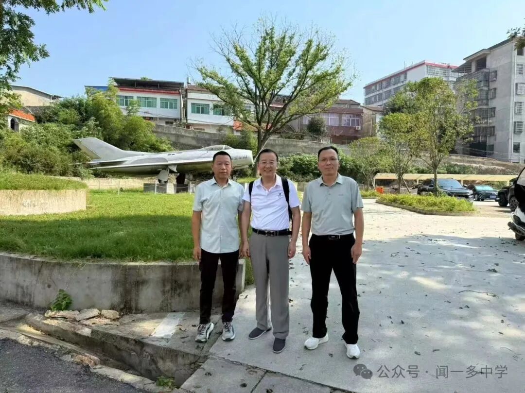 冯教授在校园飞机停机坪驻足观看,在曾经就读的瓦房教室讲述当年的刻苦攻读的故事,并对学校改善办学条件、改革发展、利用闻一多人文资源与校友资源提升办学品牌,提出了很好的意见建议。