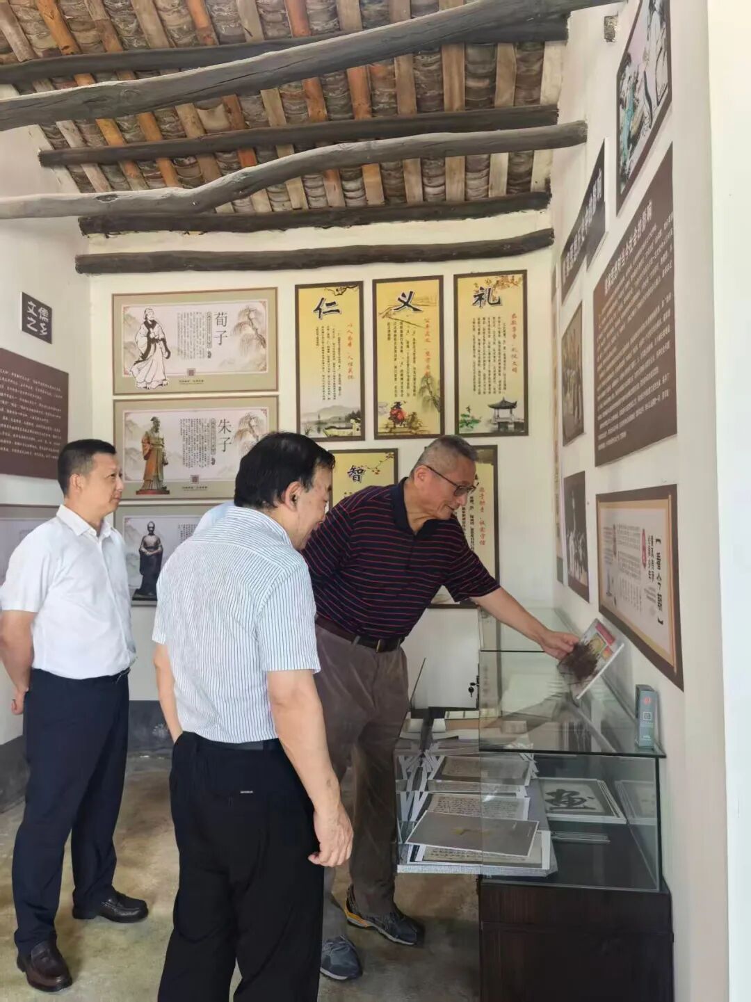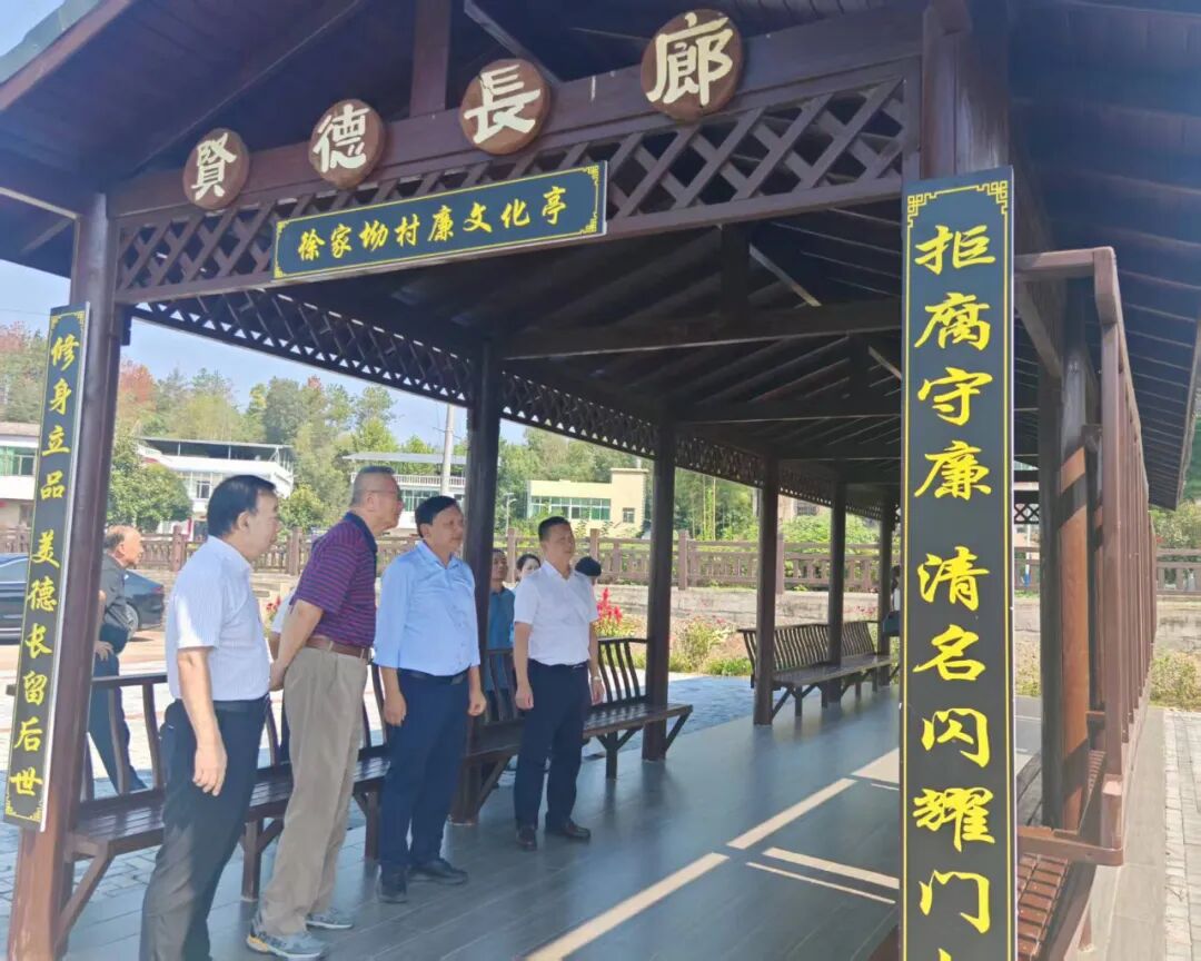 随后,家属一行走进村内贤德长廊。卢明书记首先对徐复观家属长期以来关心支持家乡建设表示感谢,并详细介绍徐家坳村的发展实践:近年来,村庄以儒家“仁、义、礼、智、信” 五常理念为核心,发动村民主动参与共建,从人居环境整治到公共设施完善,村庄面貌焕然一新。家属们对这一模式高度认可,认为传统文化与现代乡村治理的创新结合,为乡村振兴提供了新思路,也为两岸基层治理交流提供了有益借鉴。