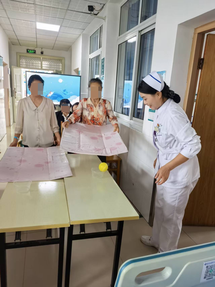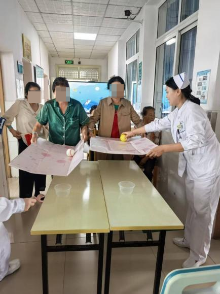 考虑到患者视力受限的特殊情况,医护人员巧妙设计,将游戏互动的主角替换为“耳朵”和“双手”。活动现场,最受欢迎的莫过于“玉兔送福”滑球游戏——患者们手持特制滑道,在志愿者的语音引导下,将代表吉祥的“玉兔”小球缓缓滑入碗中。“哐当”一声清脆响起,现场顿时掌声雷动。刚完成手术的王阿姨高兴地说:“听到小球进碗的声音,特别清脆,就像听到了团圆的声音!”这个简单而用心的游戏,不仅锻炼了患者的手耳协调能力,更传递出节日的仪式感与温暖祝福。