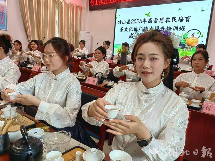 “这次培训太解渴了!”来自湖北堵河源茶叶公司的青年李园在接受记者采访时兴奋地说,“以前凭老经验,现在懂了新门道,怎么用数字技术监测茶园,怎么把我们的好茶叶卖出好价钱,心里更有底了!”课程设置精准对接竹山茶产业发展的现实需求,不仅涵盖茶叶加工、茶艺和茶文化,更拓展至品牌建设、数字农业应用等前沿领域,旨在为竹山打造一支既懂技术、又善经营、还会管理的新时代茶艺师队伍。
