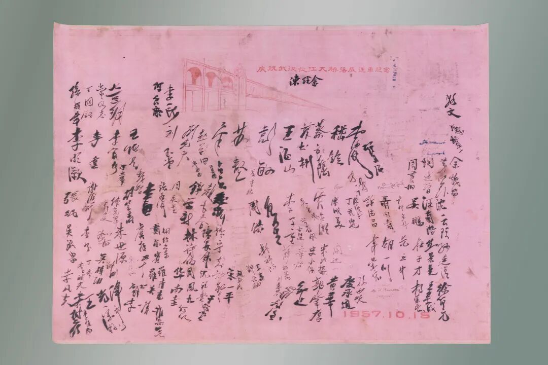 ▍桥梁博物馆首次公开展出1957年通车仪式上的珍贵签名丝绸。