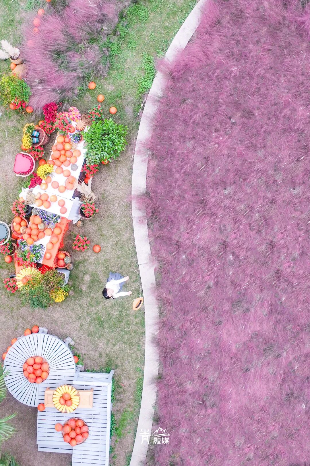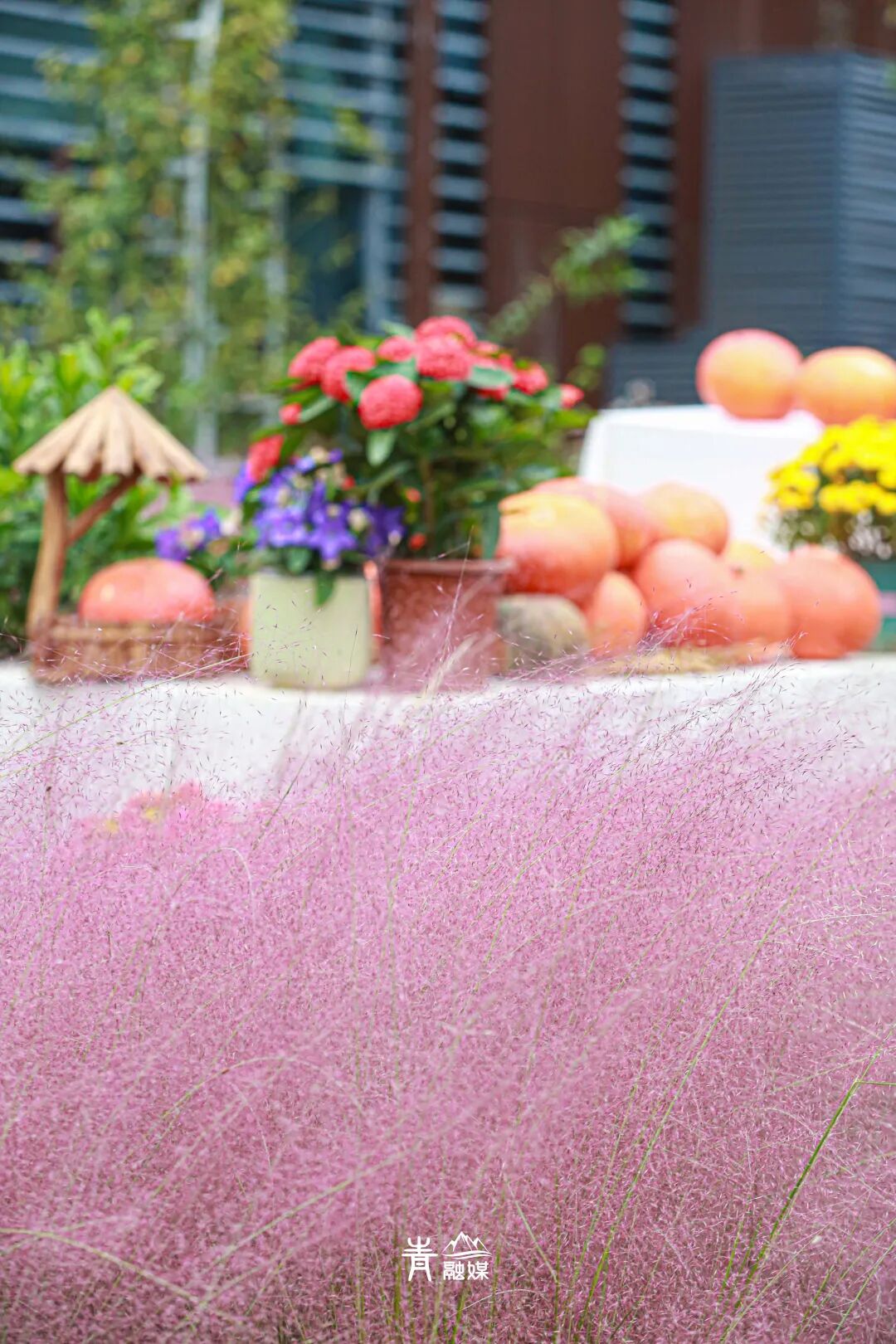 粉黛乱子草的花势虽不如往年,但依旧不妨碍出片,采用「借位大法」美片依旧。