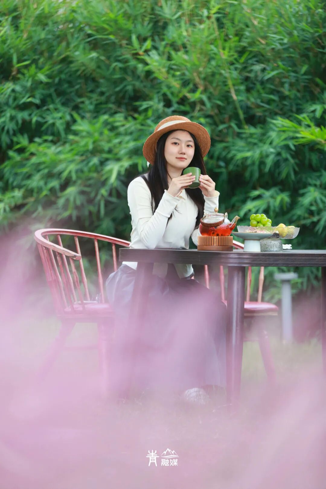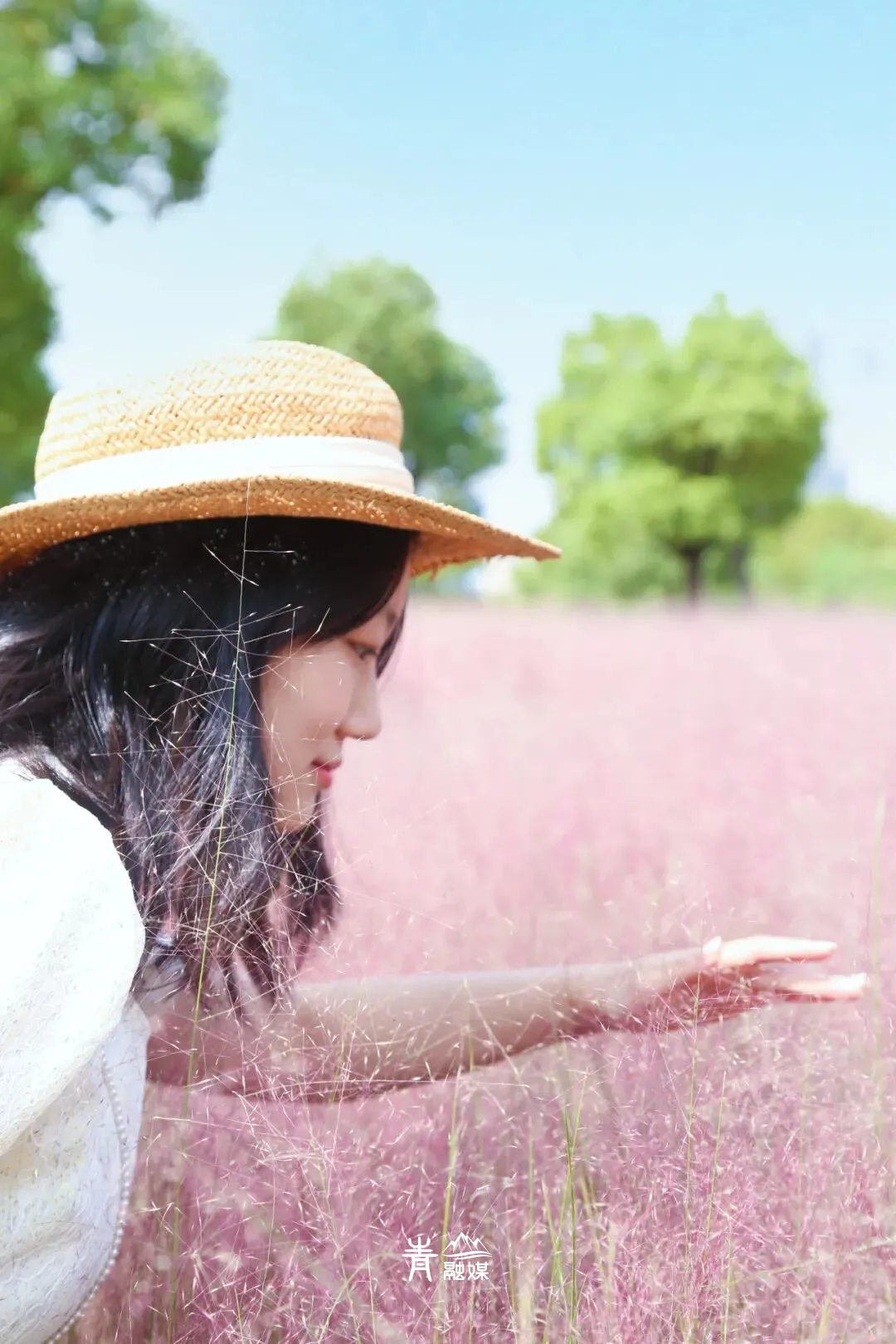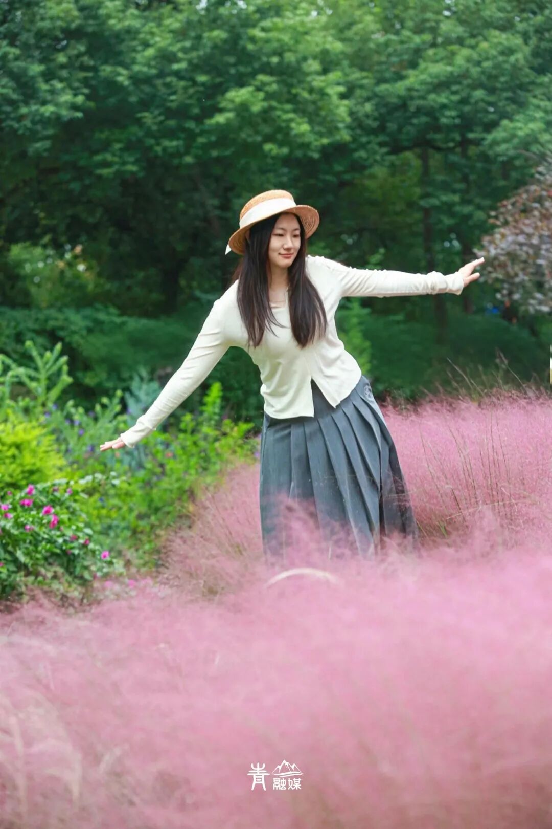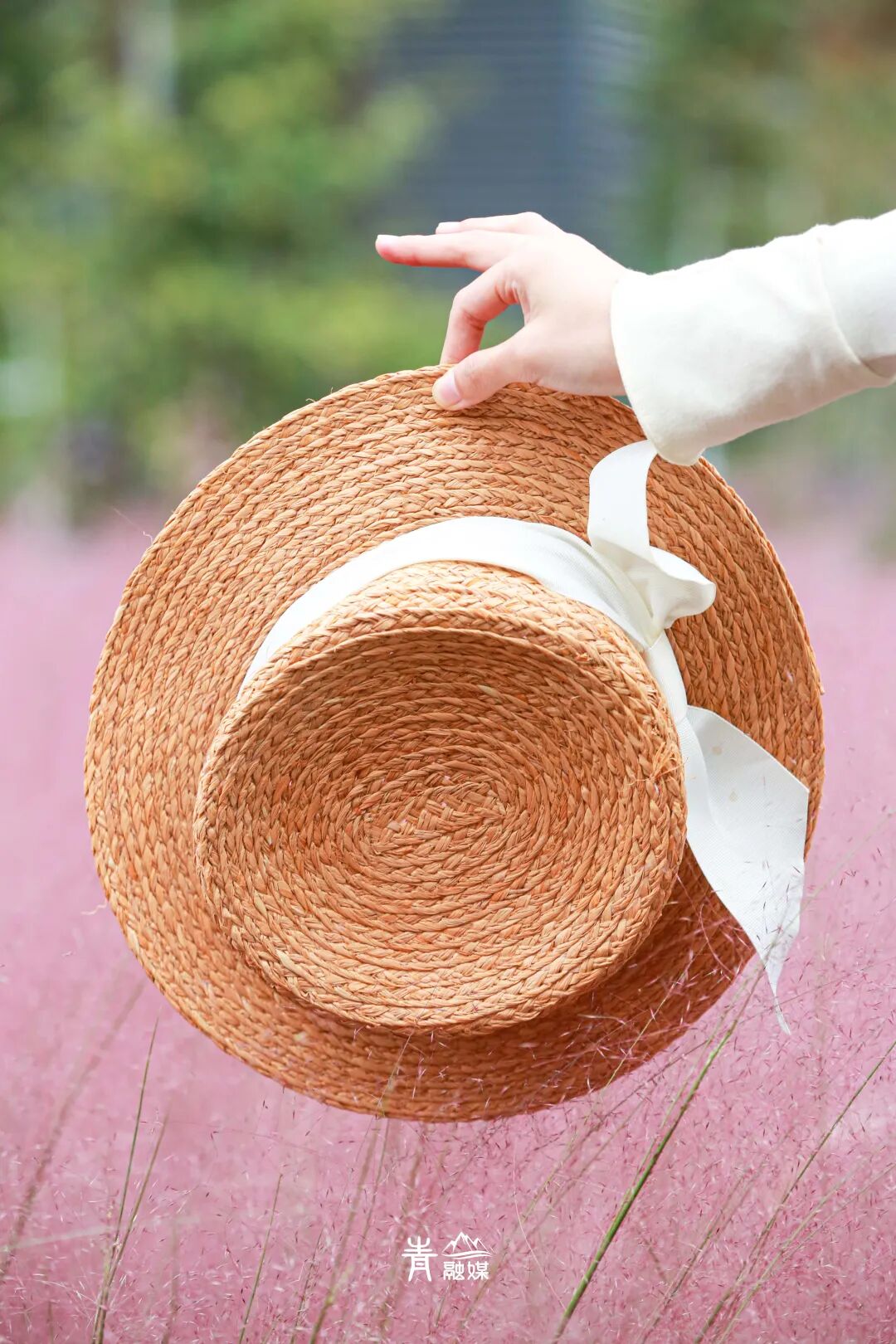 当然,你可以走近粉黛花海,随便选一个角度,微笑着摆一个pose,出片绝绝子!也可以抛起草帽,让它自由落体,抓拍瞬间动态之美,使景色流动起来。