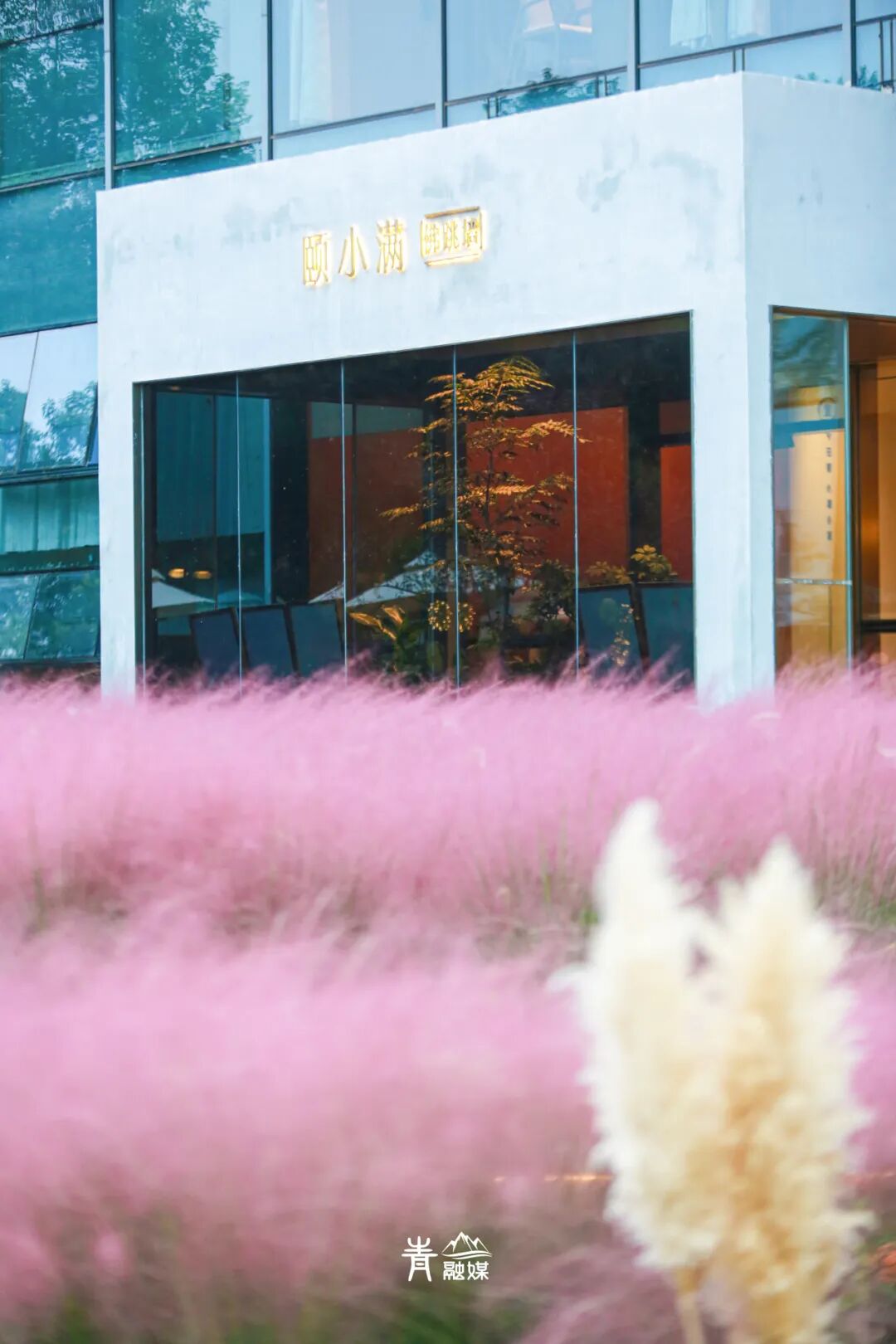 在「颐小满花园餐厅」门口,大丛大丛的粉黛乱子草形成一片粉海,第一眼就让人惊呼:好美啊!