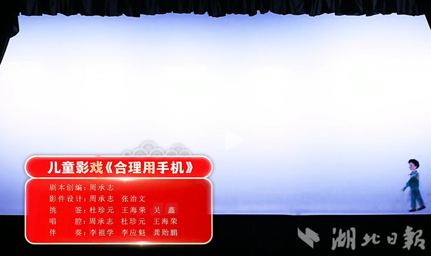 湖北日报客户端讯(通讯员张云朝)连日来,由周承志创编,张治文设计,湖北非遗传人杜珍元、王海荣、吴鑫、李祖学、李应魁、龚贻鹏等联合演绎,陇东学院录制的儿童影戏剧《合理用手机》视频,在网络上一经流出,好评如潮。