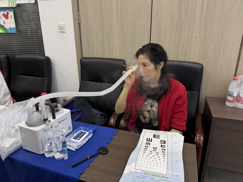 讲座结束后,活动特别设置眼部雾化服务区,为受眼疲劳、干涩困扰的居民提供专业护理。医护人员耐心为居民操作,轻柔的雾化护理让不少居民直呼“眼睛瞬间清爽了”,长期看手机、看电视带来的干涩、酸胀感得到明显缓解。大家纷纷表示,这样的活动十分贴心,在家门口就能享受到专业眼科服务,既学到了知识,有效缓解眼部问题,希望社区今后能多开展此类惠民活动。