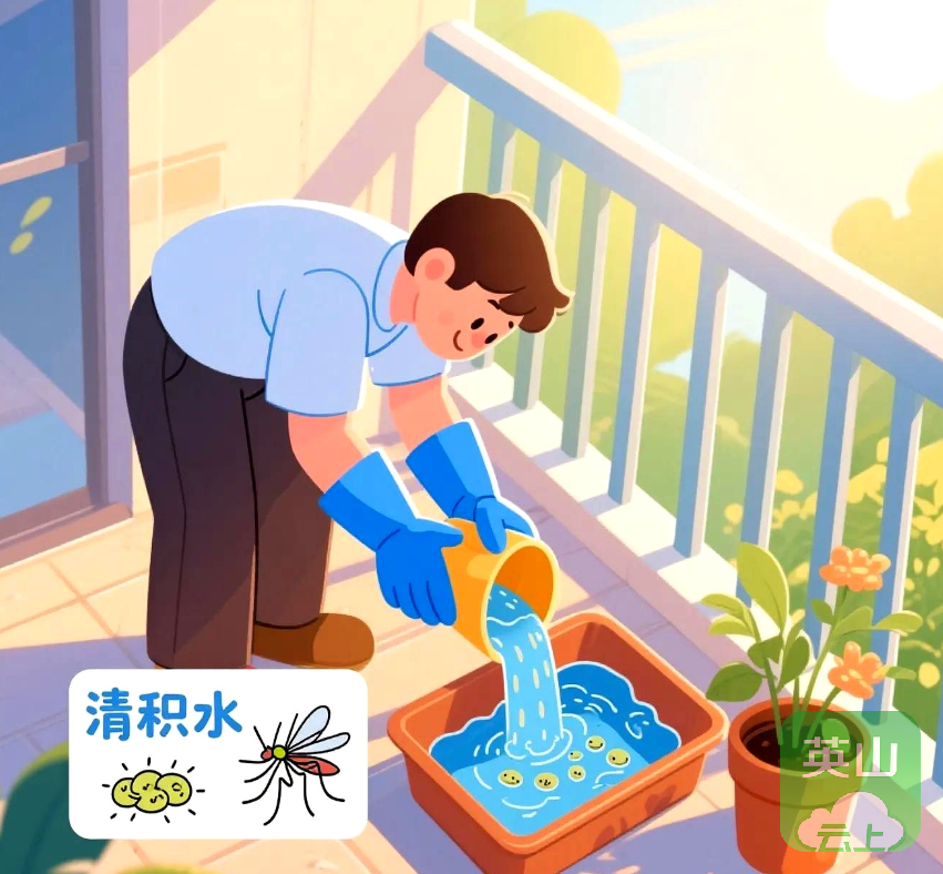每周对房前屋后、阳台、楼道等区域进行“翻盆倒罐”,清空花盆托盘、废旧轮胎、饮料瓶等容器内的积水,尤其注意空调外机接水盘、地漏周边等隐蔽处,确保无积水残留。