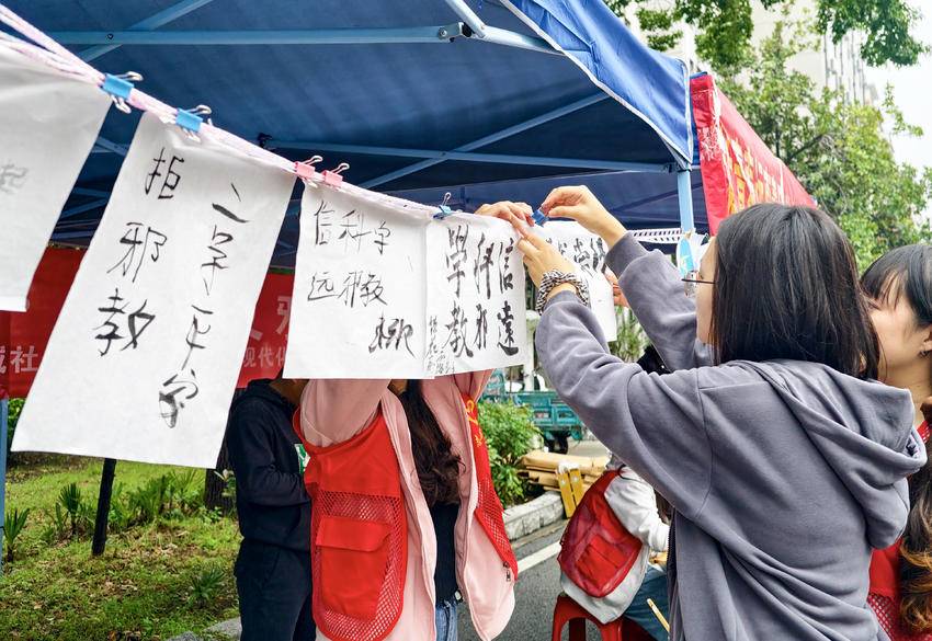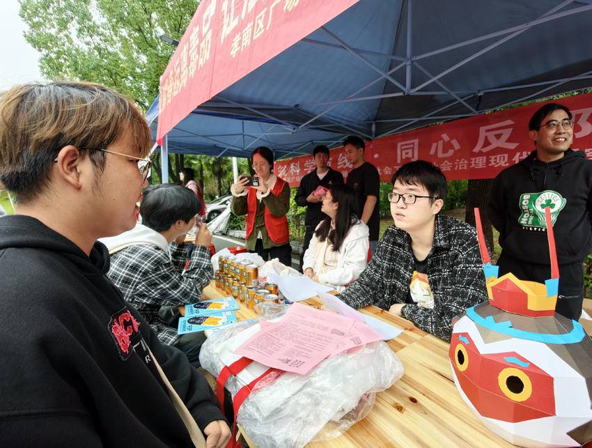 此外,现场还同步展出反邪教知识展板,吸引众多学生驻足观看。志愿者们共发放反邪教宣传资料及文创宣传品580份,进一步扩大了宣传覆盖面。