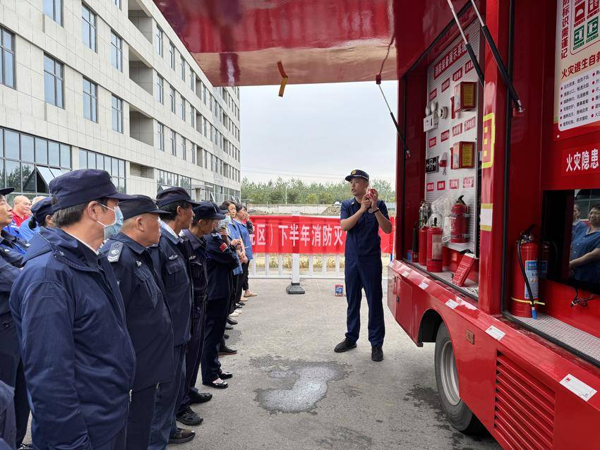 “灭火器使用记住四字口诀‘提、拔、握、压’”“使用室内消火栓时一定要对准水枪水带的卡口……”随后,宣传员现场演示了灭火器、过滤式自救呼吸器、消防水带及水枪等消防器材,并手把手教授参训人员灭火器的使用要领。通过先示范后实操的方式,让大家亲身体会灭火器的使用方法,切实提高了大家的防火灭火能力。