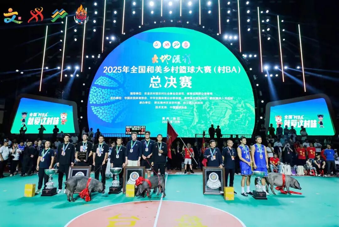 本次全国“村BA”总决赛的奖品也极具“农味”特色,黄牛、黑毛猪、山羊、银帽、银项圈、非遗绣片、农特产大礼包等超接地气的奖品农味拉满。颁奖仪式上,咸丰白茶队队员们笑着拉着黑毛猪,扛起银项圈,“这不仅是奖品,更是我们乡村振兴的象征。”