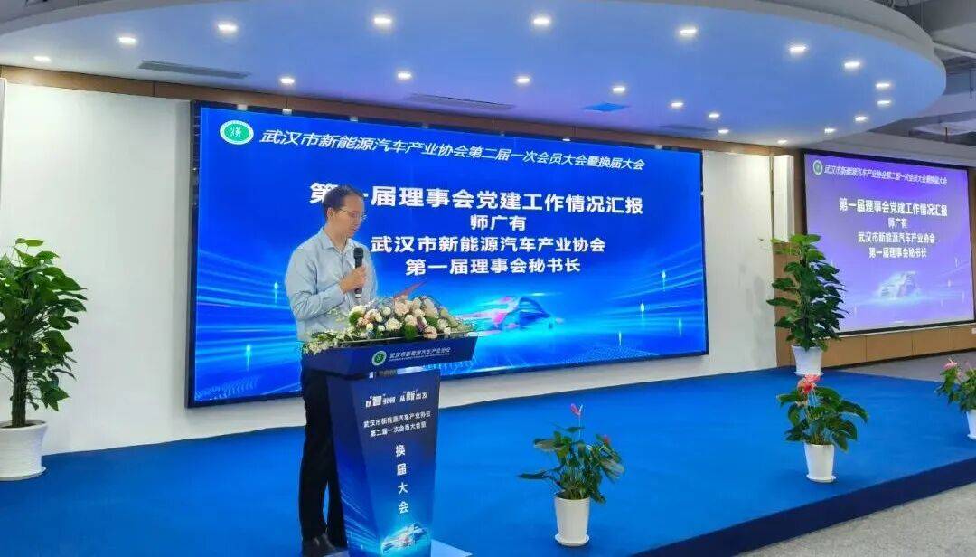 武汉市新能源汽车产业协会党支部书记师广有向大会通报了第一届理事会党建工作有关情况,他介绍,协会党支部在市经信局党委的指导下,以党建为平台,积极开展会员企业党建共建、党建培训等工作;以党建为引领,推动党建工作与协会业务工作同频共振、相互促进。下一步党支部将加大团结全体会员单位,积极探索符合协会特点和行业特色的党建工作新路径、新方法,增强党组织的政治功能和组织功能,以更高标准、更实举措推动协会党建工作高质量发展,为武汉市在“支点建设”中贡献新能源汽车行业的智慧和力量。