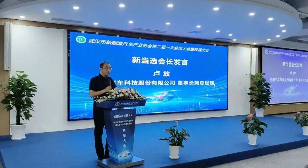 新当选的第二届理事会会长卢放发表就职讲话。作为新一届会长,将与全体理事会成员一起,紧紧围绕服务产业发展的中心任务,重点做好以下工作:第一,搭建更加畅通的交流平台。协会将致力于打破企业壁垒,促进整车企业、零部件企业、高校院所等各方力量的深度融合,推动技术创新供需对接,促进资源共享和优势互补;第二,营造更具活力的创新环境。协会将积极推动建立以企业为主体、市场为导向、产学研用相结合的技术创新体系。同时,也将关注商业模式创新和服务创新,推动新能源汽车与能源、交通、信息等领域的融合发展,全面助力武汉市产业转型升级;第三,提供更加精准的服务支持。将全力配合市委市政府有关产业发展工作部署的同时,为企业发展争取更多政策支持,推动全体会员及产业链实现共创共赢;第四,将树立更加鲜明的产业形象。协会将加强行业自律,加大宣传力度,通过各种渠道展示武汉新能源汽车产业的发展成果,提升“武汉智造”的品牌形象。他最后提到,新能源汽车产业的发展是一场“耐力赛”,更是一场“协同战”,需要我们上下游保持战略定力,深化协同、握指成拳。并表示让我们以本次会议为新的起点,秉持“敢为人先、追求卓越”的武汉精神,共同推动武汉新能源汽车产业实现新的跨越,为中国汽车产业高质量发展贡献力量。