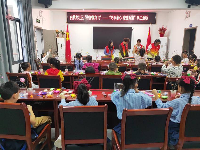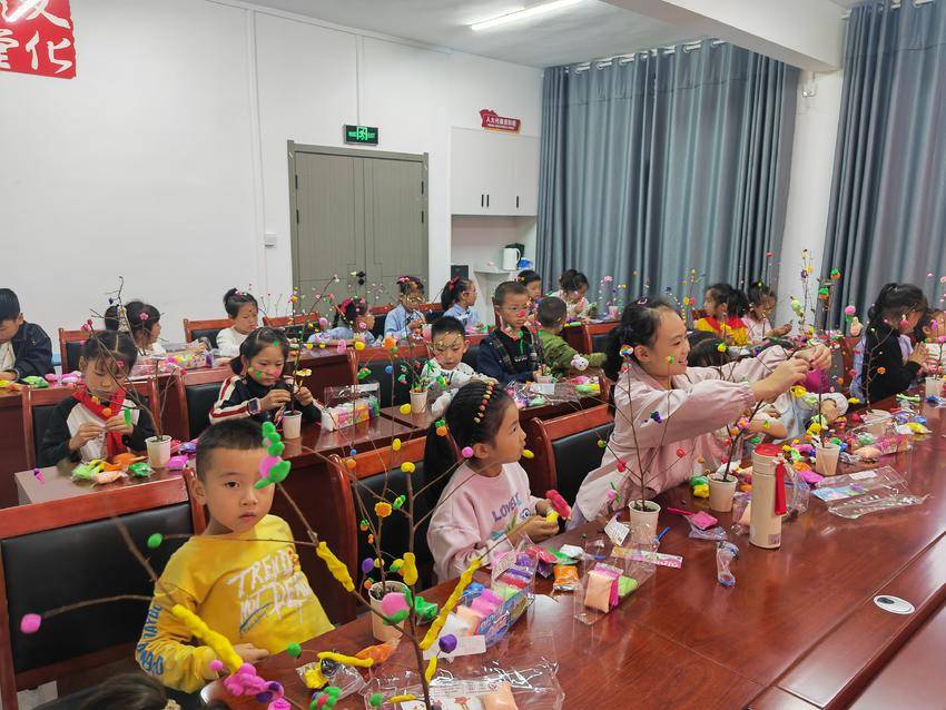 活动伊始,社区工作人员向孩子们展示了利用枯树枝和彩泥制作的样品:有栩栩如生、驻足枝头的蝴蝶;有绚丽多姿、迎风绽放的花朵;还有品种繁多、晶莹剔透的水果。这些精美的作品瞬间点燃了孩子们浓厚的创作兴趣,他们个个摩拳擦掌,跃跃欲试。