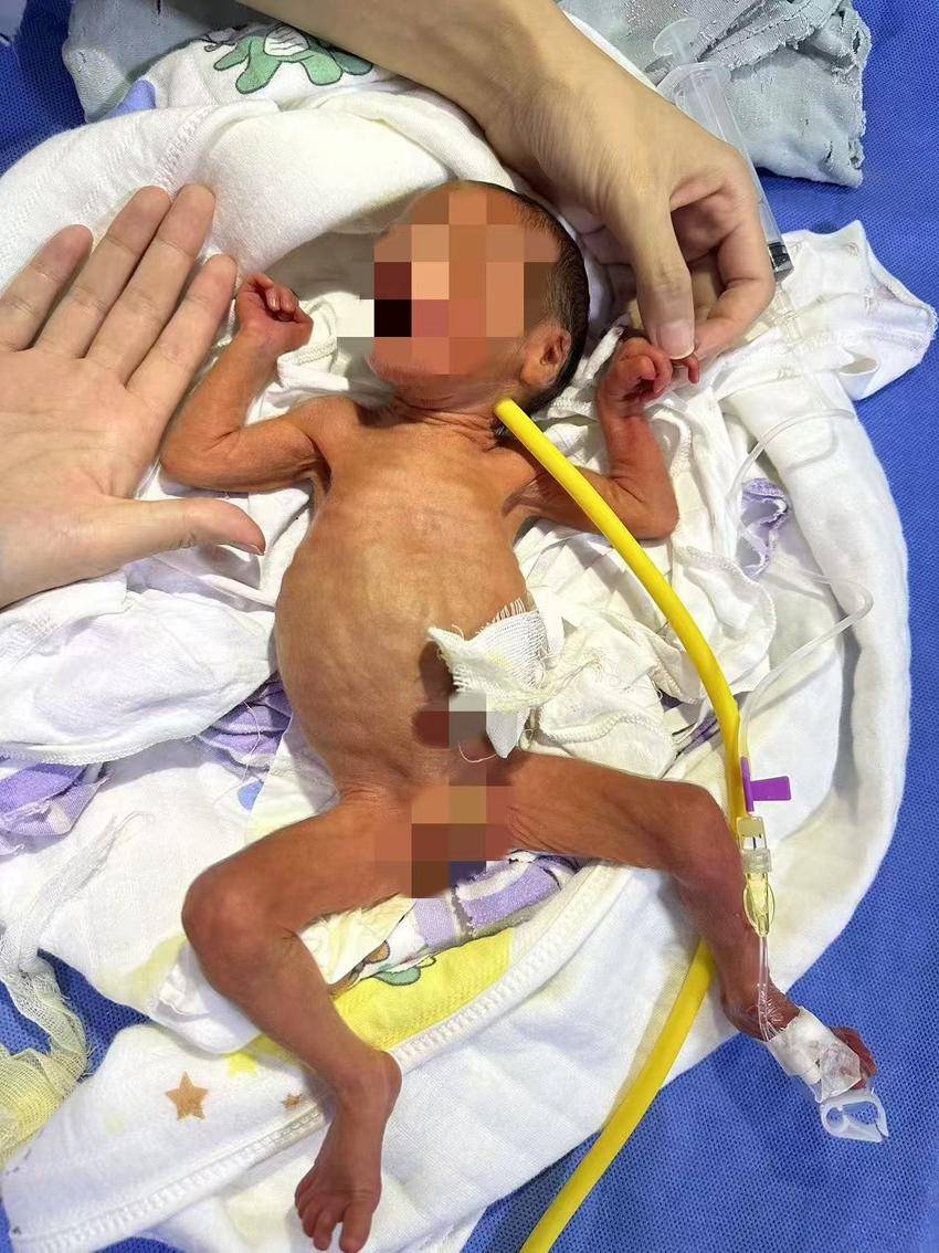 7月初的深夜,孕周仅27周的强强(化名)提前来到这个世界。出生时全身皮肤紫绀、呼吸微弱、四肢瘫软,体重仅1015克。“孩子的呼吸太微弱了,我们以为他撑不下去了……”在当地医院,面对危在旦夕的孩子,家人一度决定将孩子带回家。然而,几个小时后,听着孩子微弱的呼吸声,看着他不屈的生命迹象,家人又将强强送至当地医院新生儿科。