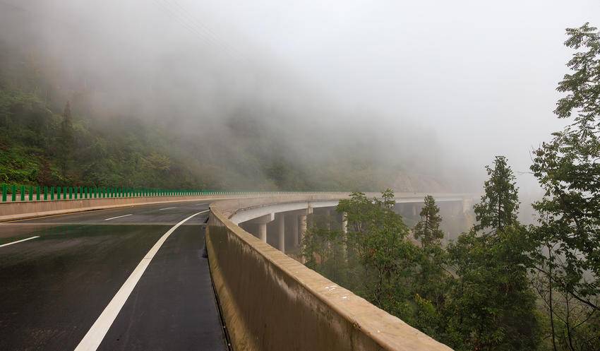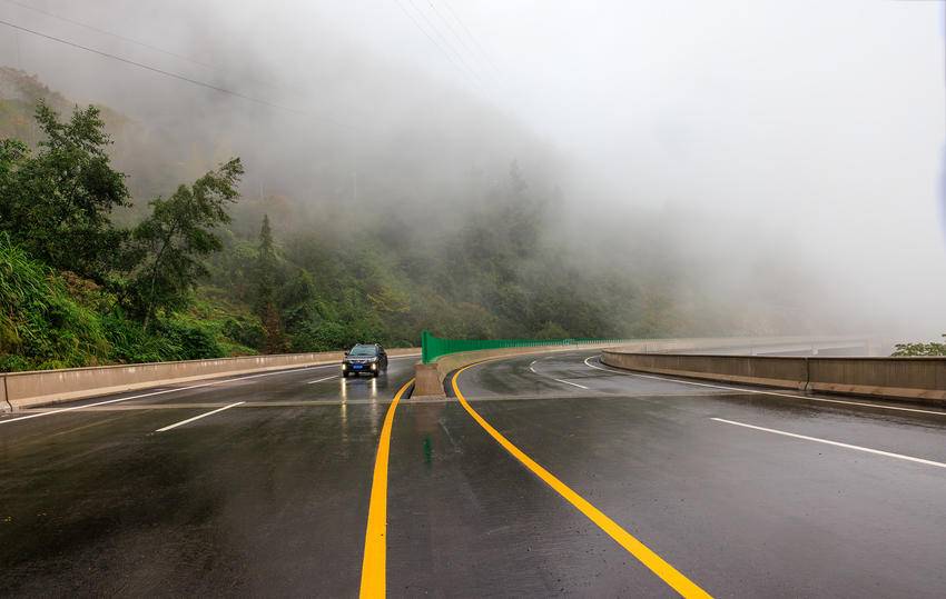 湖北日报客户端讯(通讯员 郑红)秋风秋雨,白雾弥漫,车辆平稳地行驶在云长线漆黑色的路面上,车轮滚滚,畅行无阻,沿途风景如诗如画。