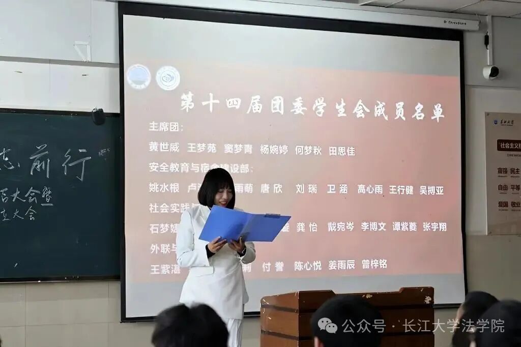 湖北日报客户端讯(通讯员 李婉婷)10月19日下午,长江大学法学院于东校区12教204教室隆重召开第十三届团委学生会总结大会暨第十四届团委学生会成立大会。法学院院长李华成、党委副书记严星、本科生党支部书记雷礼、团委书记吴敏出席会议,第十三届与第十四届团委学生会全体成员齐聚现场,共同见证这一承前启后的重要时刻。