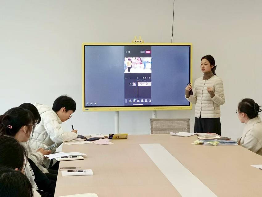 在拍摄角度环节,陈采奕老师系统介绍了幼儿园场景中常用的八种角度:平视角度还原幼儿真实互动状态,仰拍角度凸显孩子的天真活力,俯拍角度适合呈现区域活动的整体布局,侧拍角度捕捉幼儿专注的侧脸神态,特写角度聚焦手部操作或灿烂笑容,斜拍角度让集体活动画面更具动感,背面角度展现孩子探索的背影故事,微俯角度则能兼顾个体动作与周围环境。每介绍一种角度,张老师都搭配对应的幼儿活动实拍图,让教师直观理解不同角度的表达效果。