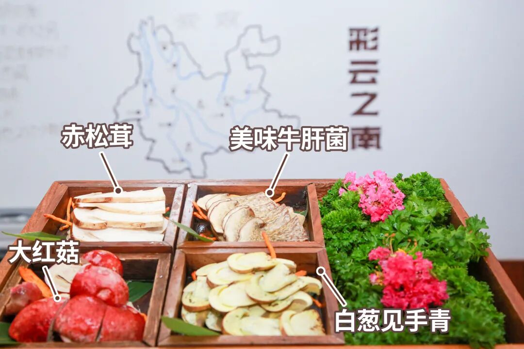 传说中吃了会“见小人”的见手青,中国四大神菌:松茸、牛肝菌、鸡枞、羊肚菌在这里都能吃到,展示柜里菌子列成一排,给你看到最本真的云南山野风貌。