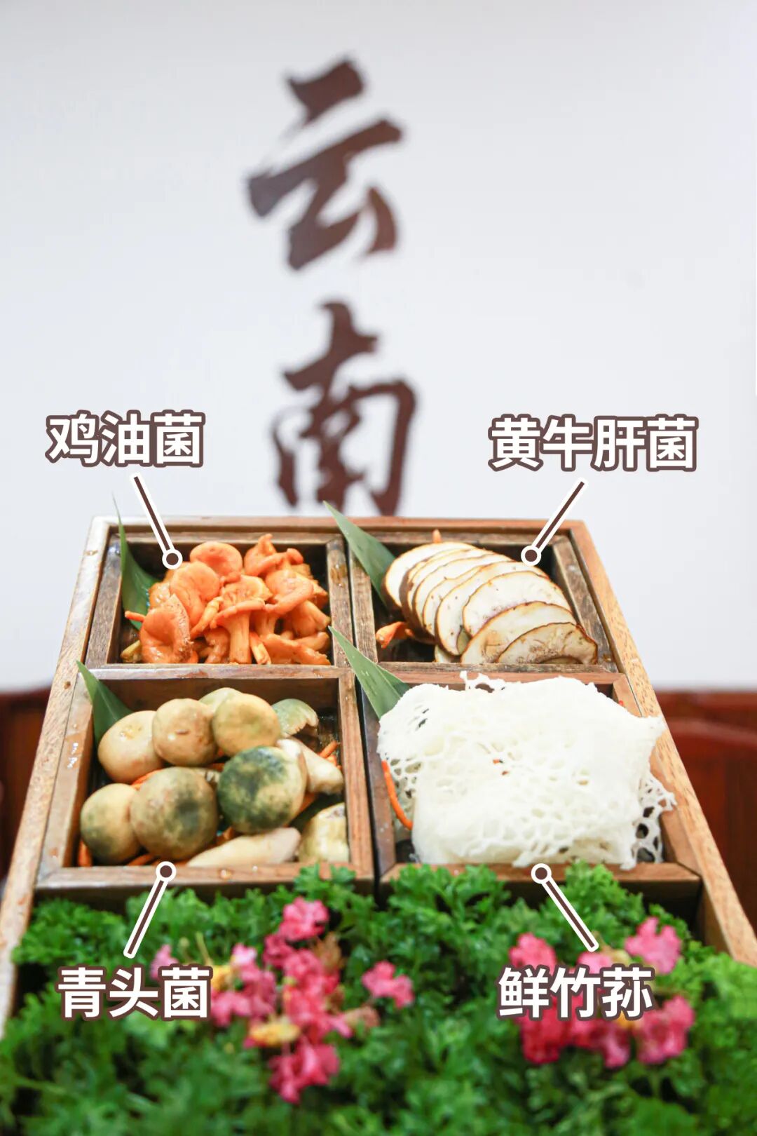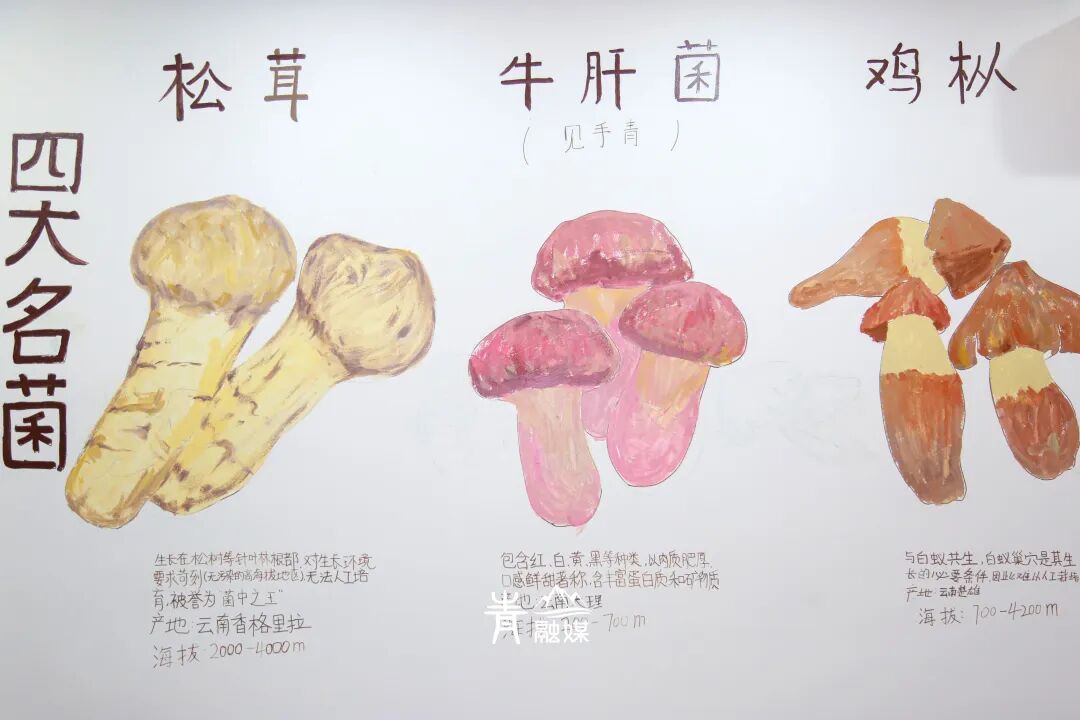 包房的白墙上画着云南地图,写着四大神菌的种类,非常具有云南地方特色。这方天地,暂且隔开了市井的喧嚣,只余山风与舌尖的私语。