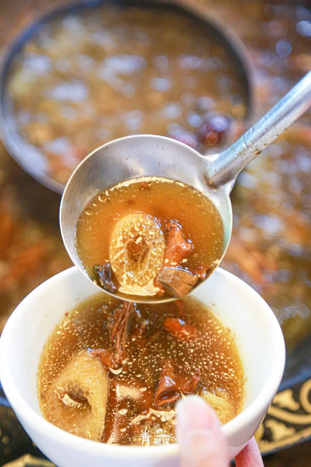 每一锅汤底都要提前留下样本,以备不时之需。这是云南吃菌子的一贯流程,也是确保大家食品安全的必要环节。所以,哪怕是见手青,也是安全放心食用的美食。