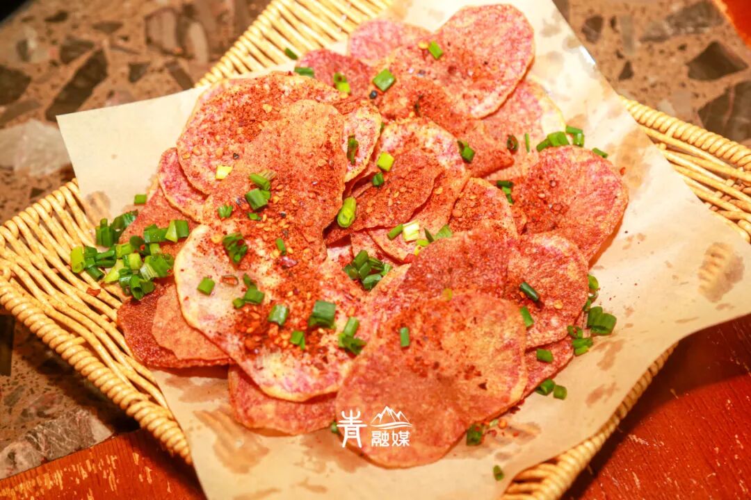 「丽江七彩洋芋」是大地深藏的宝藏,也是丽江的特产。它其貌不扬,紫红色的外衣裹着泥土气息,当你切开,瞬间便恍若跌入一个微缩的宇宙:内里的薯肉并非一色,竟如一朵盛开的紫红玫瑰,由中心向外放射出层次分明的紫红纹路。