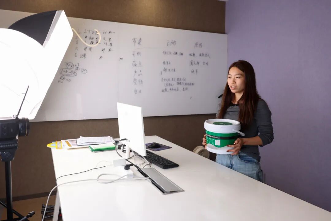 简一科技员工正在进行跨境电商直播,推介无电辐射产品